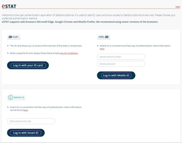 - Log in: Choose your preferred login method (e-Residency card is the same as ID card).