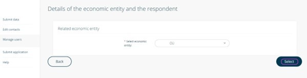- Select a company (economic entity) from the drop-down menu and press “Select”