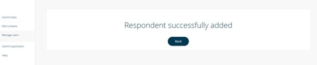 - Manage users: Navigate to Manage users and click Add new respondent.