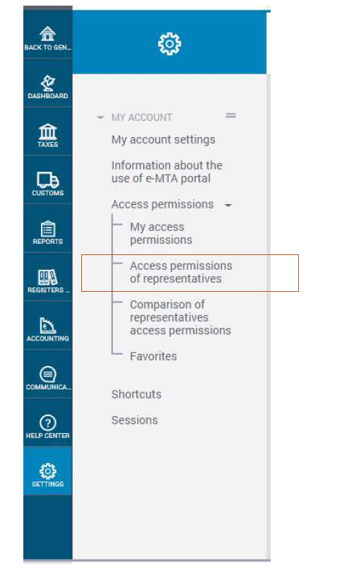 - Navigate to access permissions: Go to Settings → Access permissions → Access permissions of representatives.