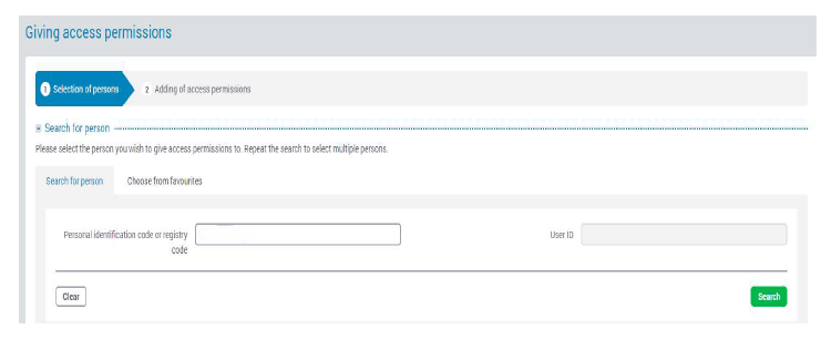 - Grant access: Choose your company, then click New access permission. Find your accountant using their personal ID code or user ID, and click Search.